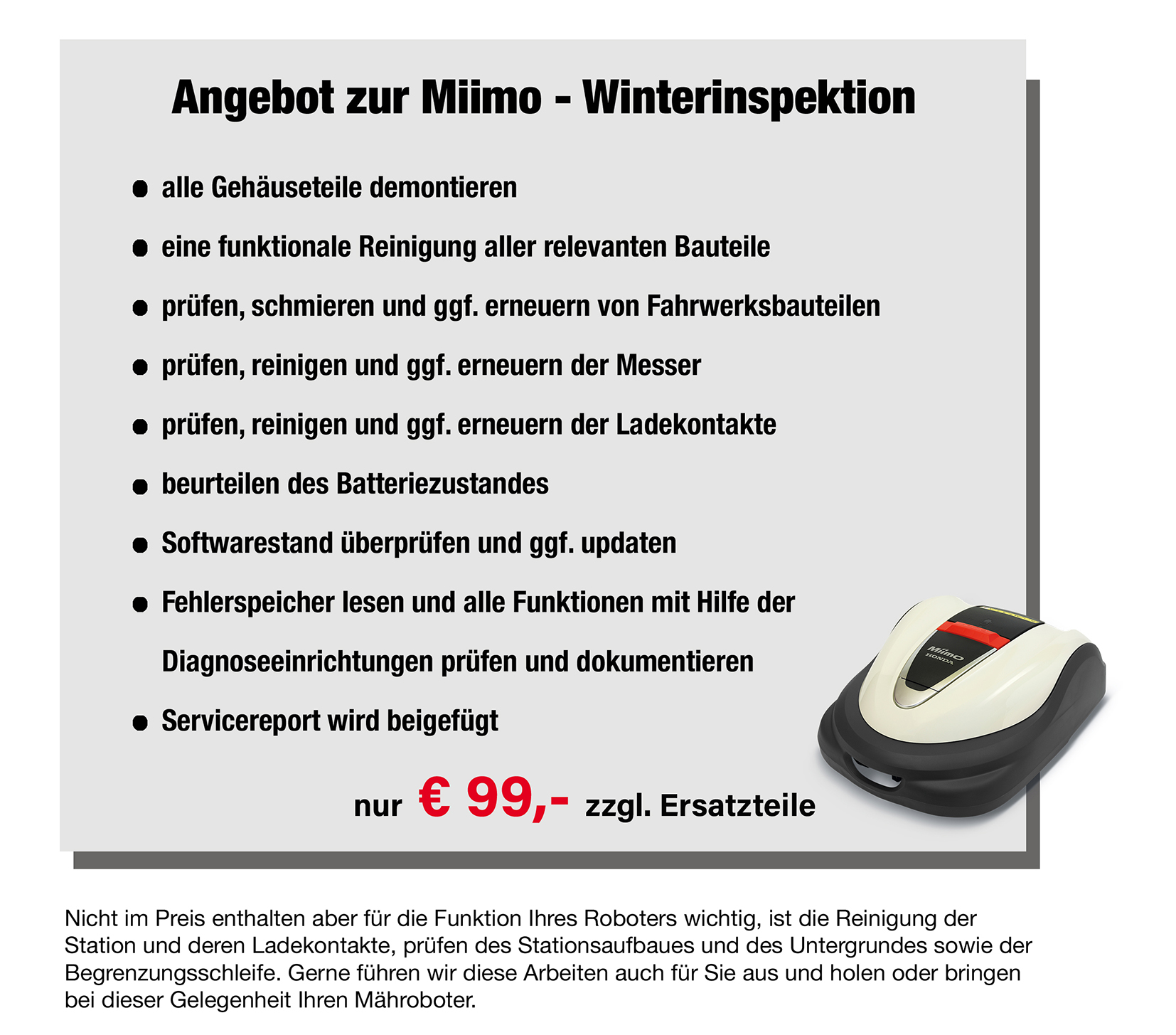 Jahresinspektion für Rasenroboter Honda Miimo nach Herstellervorgabe :